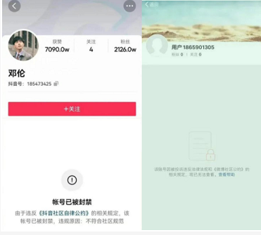 目前,邓伦个人微博、抖音账号、邓伦工作室微博账号均被封,微博最狠,只给了一个道歉机会。