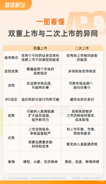 双重上市(dual primary listing),是指两个资本市场均为第一上市地。已经在美国市场上市情况下,在香港市场按当地市场规则发行上市,其须遵守的规则与在香港首次公开发行股份的公司要求完全一致,两市场股票无法跨市场流通,股价表现相对独立,可能产生价差。