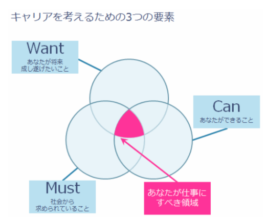在过去几个月里,无论是通过就职塾还是凭借自身力量,就活生们都进行了全面自我分析以及获得了一定的业界认知,并且已经有大部分同学确定了自己今后想要从事的业界(如果出现没有确定业界的情况,请参照Want-Can-Must三要素分析,选定从事领域)。
