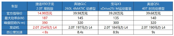 “射人先射马,擒贼先擒王。”要想了解一款车的性能,首先要看发动机。从参数来看,捷途X90子龙搭载的鲲鹏动力2.0T发动机可迸发187kW的最大功率和390N·m的峰值扭矩。光说数据你可能感受不大,接下来我们上图,让这台发动机去和我们熟悉的几款合资车型的2.0T发动机较较劲。