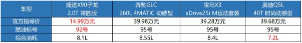 哪怕与豪华品牌对比,捷途X90子龙在油耗方面依然更加亲民。虽然奥迪Q5L那祖传的省油不太比得了,但8.1L的百公里油耗绝对也称得上非常经济了。而且,其它2.0T发动机普遍需要更贵的95号汽油,而捷途X90子龙就相对更好养活一些,只需要92号油就可以了,从长远来看捷途X90子龙的经济性明显更高。