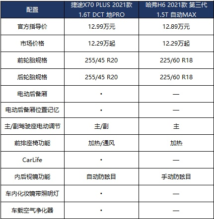 两款车都提供了多种动力组合。在10-13万元的主流价格区间内,是捷途X70 PLUS的1.6TGDI与第三代哈弗H6的1.5TGDI发动机对阵。