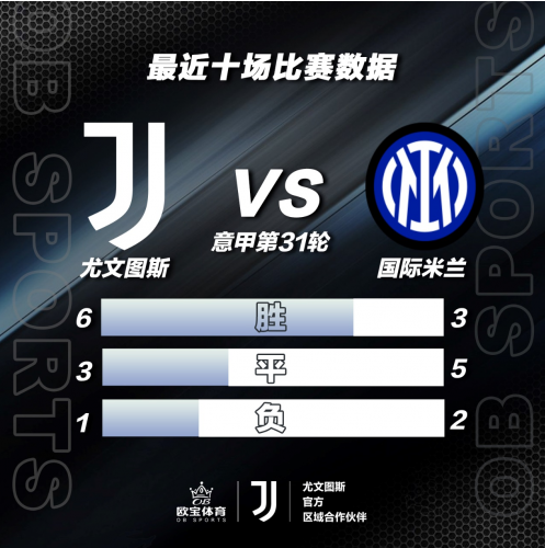 欧宝体育数据,双方近10次交锋,尤文图斯4胜5平1负处于上风,本赛季意甲首回合交锋,尤文图斯客场1:1战平国际米兰。