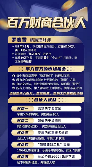 对于想学习理财、想做副业、想年入百万的人而言,罗赛雪提供了一种简单有效的模式,让躺赚不再是“梦”。