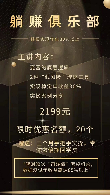 阶层流动加快的时代下,“躺赚”成为了人人都能实现的梦想,暴富不再是由上层阶级造就的神话。“躺赚”也因此成为了行业“香饽饽”。诸多理财师、专业老师涌入这个行业,以“躺赚”课程造就暴富神话。