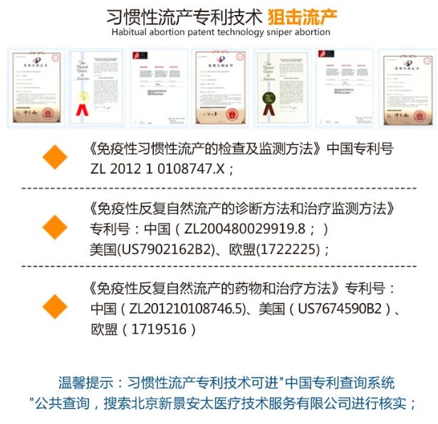 2、安太专利狙击习惯性流产:针对免疫因素导致的习惯性流产,安太妇产医院拥有早期习惯性流产诊断和治疗的专利,免疫因素导致的早期习惯性流产,安太妇产医院可以签约治疗!