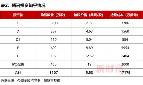 腾讯在知乎美股IPO后合计持股大约3107万股,持股总成本17179万美元,平均持股成本5.53美元(表2),腾讯要想获得正收益,知乎股价也要高于这个价格。