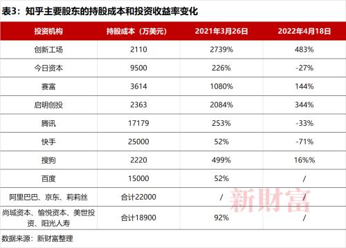 F轮重要投资者还有一个不得不提,就是百度。其以1.5亿美元获得知乎1198.5万股,不过,百度持股小于5%,减持时间已不可考,收益率也未知。