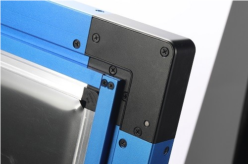 这一探索,又是8年。经过十余次反复优化,一款可以通过可更换钢片、让生产更自由,同时也能让换线效率更高的SMT活动钢网诞生了。同时,在张力控制这方面,SMT活动网框加入了特殊的设计,可以保持钢网张力恒定并根据客户产品特性定制张力,提高锡膏印刷精度,提高良品率的。