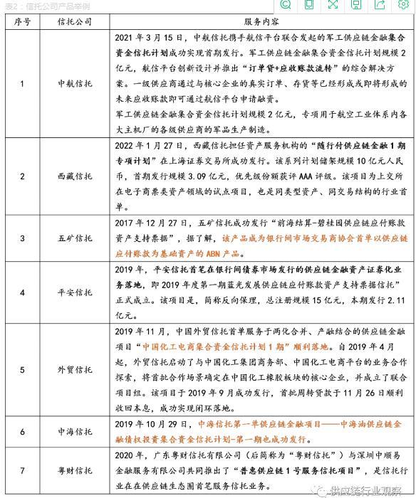 一是,由单一产品构成的微型生态:以具体、单一产品开展供应链金融业务的,其实质是通过交易结构搭建供应链金融微型生态。多数信托公司围绕通过设立信托计划为产业链上的上下游企业提供包括供应链金融融资在内的服务。最常见的便是,在非标市场上设立资金信托方式提供融资或在标准化市场发行ABS、ABN或ABCP。其中,由于ABS/ABN标准化程度高,而成为多数信托开展业务的首选方向。