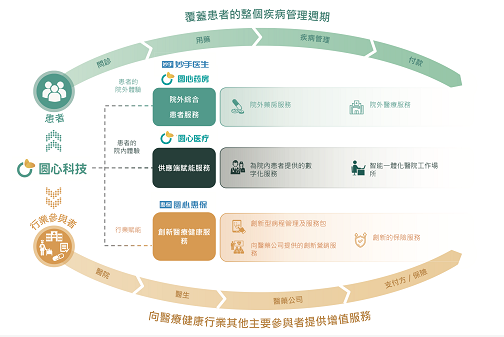 成立于2015年的圆心科技主要通过全周期医疗健康服务(即院外综合患者服务、供给端赋能服务和创新医疗健康服务)来为患者传递价值。根据弗若斯特沙利文的资料,按2020年收入计算,圆心科技是中国第一大专注于处方药的综合医疗交付平台。