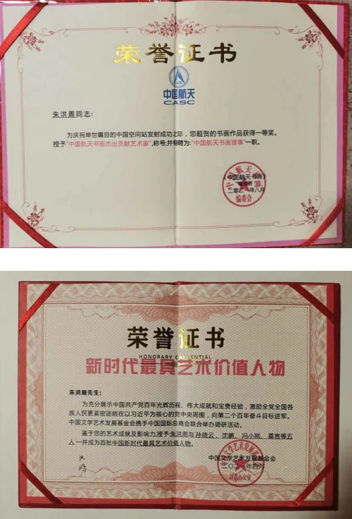 二零一七年由中国人民美术出版社恭聘担任高级书画顾问,颁发“中国人民美术出版社高级书画顾问”荣誉称号。经海外联合工作委员会 ,美中文化名人交流协会 联合推荐:特聘为首批“新时代大国文化领军人物”。二零二一年四月中国文学艺术发展基金会携手中国国际总商会联合举办调研活动,被授予首批中国新时代最具艺术价值人物。二零二一年七月特邀成为沈鹏书法艺术工作室专家组高级顾问一职(任期五年)。二零二一年八月,为庆祝举世瞩目的中国空间站发射成功,提贺作品“东风长征破万里,神舟天宫闯星河。”作品贺一等奖,被中国航天书画编委会授予“中国航天书画杰出贡献艺术家”称号;并特聘为:“中国航天书画理事”一职。