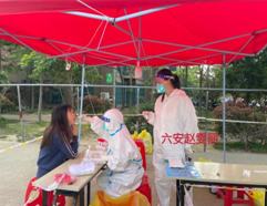 六安中心支公司孙娟和赵雯丽身穿防护服,变身“大白”分别在六安市关塘小区和下龙爪社区协助医护人员开展核酸采集工作。沈汶、惠健、谢娟等员工也戴上了小红帽,披上红马褂,分别在其所在社区的统一安排下,协助开展物资运送、卡口查验和核酸采集工作。
