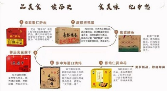 目前,已经推广的品牌有大有丰酱菜、麦仁驴肉、陈家糟鱼、张仲海道口烧鸡、唐桥鸭蛋、馨远斋豆腐干、张培仁贡麻花等老字号非遗美食,满足了消费者多元化的味蕾需求。秉承“精益求精”的经营理念,严控品质,保障食品卫生,让消费者吃得放心、安心、舒心。