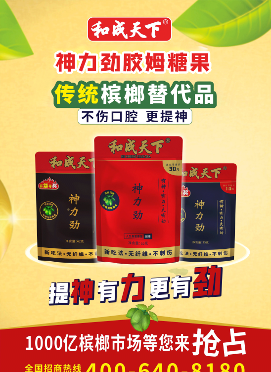 2022年,槟榔市场风起云涌,和成天下神力劲胶姆糖果是机遇也是挑战,和成天下神力劲胶姆糖果诚邀全国经销商共同携手,创赢未来!
