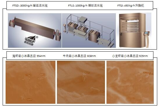 科学资料显示,肉禽鱼类食物细胞的平均直径在10um—20um之间,根茎类植物食品细胞的平均直径在10um—100um之间;冻品形成冰晶直径的大小(无论是食物游离水或结合水状态下形成的冰晶),冻品冰晶进入nm级,意味着食物细胞保持完好。