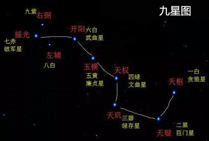 地球自转一周为24小时,12个时辰,地球大约365天围绕太阳自转一圈,由此得出了春夏秋冬,24节气的变化,所以在很早以前先人们就推演出“元运”之说,“天上九星,地下九宫”之说;贪狼一白星居坎,巨门二黑星居坤,禄存三碧星居震,文曲四绿星居巽,廉贞五黄星居中,武曲六白星居乾,破军七赤星居兑,左辅八白星居艮,右弼九紫星居离。