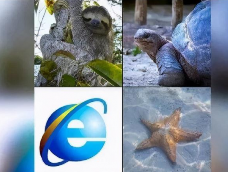 到了今天,IE早已经老掉牙,产品竞争力远远落后于其他主流产品,甚至有人说这个世界上有四种物种最慢,分别是海星、树懒、乌龟、IE。