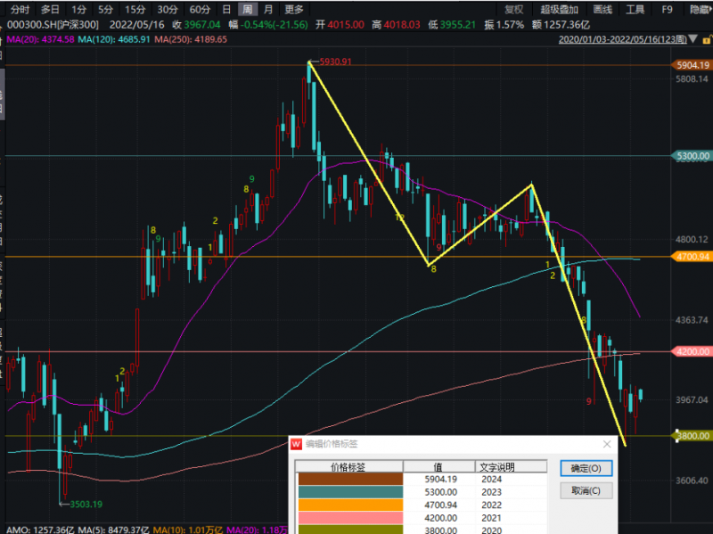 目前4月底以来市场正在进行D浪反弹,受20周线和250周线压制,或有底部反弹可能。