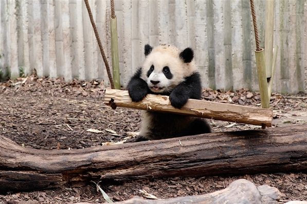 (奥利奥认养大熊猫:正在玩耍的“小奥利奥”)