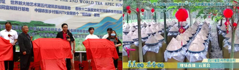 四川雅安叶山村由四川省扶贫基金会产业部部长郑景涛,四川省扶贫基金会雅安分会会长王超英揭牌;彭州明台村分别由大会主席车夫,四川师大谢元鲁教授,致和街道办主任祁中华,明台村总支部书记谢贤斌,明台村总支部副书记柳万丽,明台村老龄支部书记庄井志,明台村企业支部书记邵远久揭牌。四川茶海“云旅游”,慢直播镜头定焦四川雅安叶山村和四川彭州明台村;四川雅安叶山村和四川彭州明台村成为联合国国际茶日暨世界茶派克(APEC)峰会永久会址。