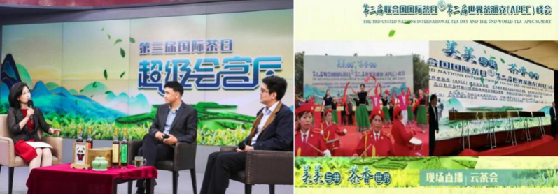 通过云茶会,连线四川彭州雅安分会场,实现“线上逛,云上品”,积极助力茶农增收,带动茶农致富。现场联合国国际茶日超级会客厅,邀请到了中国农业国际合作促进会常务副秘书长、茶产业委员会秘书长魏有,中国社科院新闻所世界传媒研究中心秘书长研究员冷凇,北京浙江企业商会常务副会长、更香集团总经理朱丽俐,百年香(北京)茶文化有限公司创始人安香主,共同围绕“茶文化、茶健康、茶产业、茶科技”展开深度探讨,为中国茶产业献策。