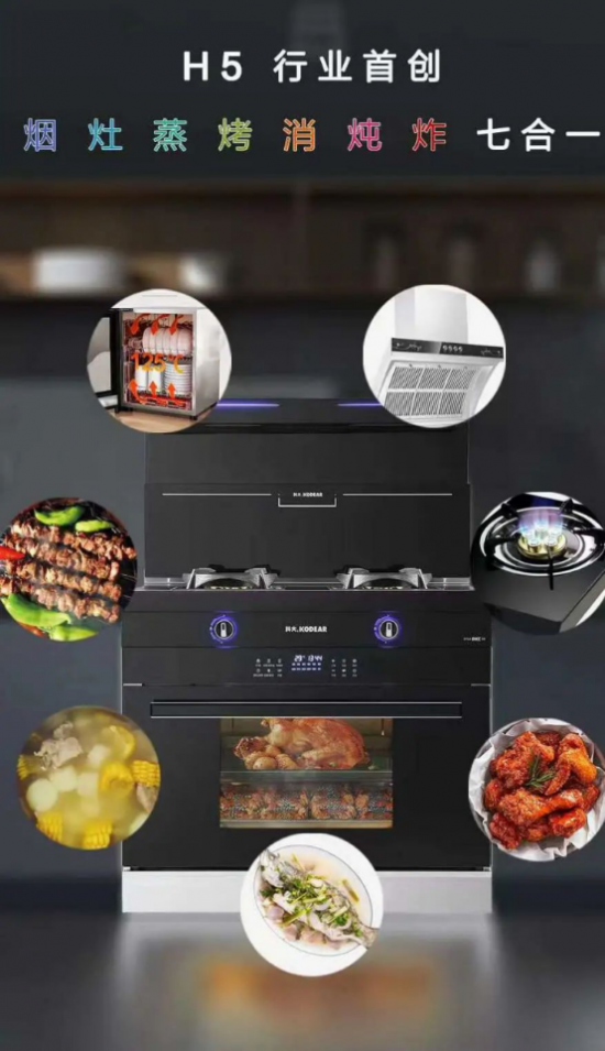 4.要实用功能多 。现代家庭由于房价很高,厨房普遍性的空间偏小,种类繁多的厨房电器无处安放,杂乱不已,还严重影响烹饪操作,让用户十分头痛,科大H5“烟灶蒸烤消炖炸”七合一集成灶,就能完美解决了厨房空间不足、厨电杂乱、备餐操作不便等诸多问题。