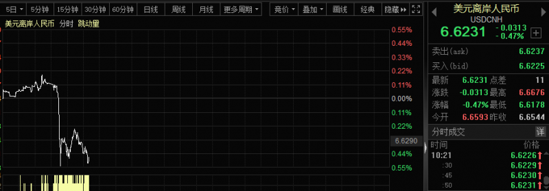 最近两天,离岸人民币的表现也十分给力。在昨天大涨近600点之后,今天再度发力,大涨超300点。两天涨幅近900点,为五月份以来的新高。