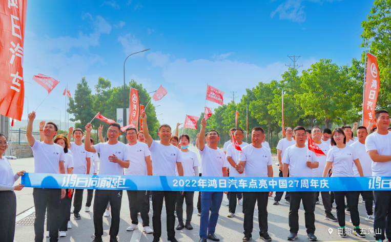 6月6日,为庆祝鸿日股份成立27周年,“鸿日向前跑”——2022鸿日汽车点亮中国27周年庆盛大开幕,由鸿日汽车集团董事长张建军领衔的高管队伍齐下跑道,集结青岛、日照、滨州三地员工和经销商、供应商合作伙伴组成的五大跑团同心协力,在广袤的神州大地上同时展开了一场声势浩大的6.6公里大跨越,以脚踏实地的奔跑点亮中国、为鸿日庆生,一展鸿日汽车“奋斗”“共创”“奔跑向上”的企业文化与精神风貌。此外,本次活动借势社交媒体“抖音”与专业智能运动平台“咕咚”,科技赋能,潮趣出圈,在业内外引发广泛关注,鸿日汽车又一次成为万众瞩目的“顶流”。