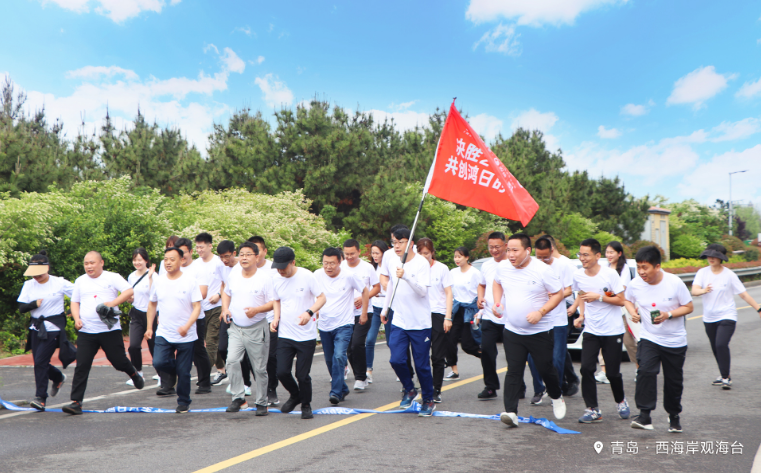 三地百城一条路,五支跑团一颗心。上午6:30,伴随着一声枪响,来自青岛、日照、滨州三地的鸿日身影在祖国大地上迎着朝阳奋力开跑。在青岛西海岸观海台,董事长张建军带领的高管方阵一马当先,各位员工紧随其后,用铿锵有力的步伐展示着鸿日人众志成城、无惧艰辛、锐意进取的精神风貌。除了大美青岛,在日照的海滩、滨州的原野乃至整片神州大地,到处都有鸿日员工与合作伙伴们挥汗前行的身影。鸿日人披挂上阵,披荆斩棘突破自己,一天的赛程结束后全员通关,完赛率100%,所有人都拿到了闪耀着荣誉光辉的金牌。6.6km向前跑,浓缩着鸿日27年的发展历程,经过此次向前跑,全体鸿日员工与合作伙伴彼此之间变得更为坚固、紧密,无数个你我携起手来,一路超越,向着美好的明天共同迈进!