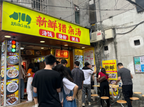 跳动de猪杂前期深耕门店运营,用堂食+外卖的经营模式,全力优化门店营业数据,真正做到堂食能排队、外卖能爆单!据跳动de猪杂门店店长介绍,广州天河体育东门店日均营业额在1万元以上,其中堂食2500元左右,外卖日均500单、8000元左右!经过对营业数据的推敲分析并结合线下客流来看,日均1万以上的营业额完全符合店铺的真实运营逻辑!因此,门店数据绝对真实!