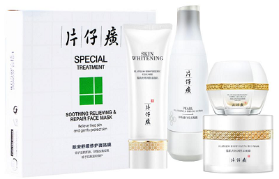 片仔癀牌雪肌无瑕润白洁面乳+片仔癀牌雪肌无瑕润白泥面膜,清洁肌肤;片仔癀牌珍珠臻白亮采凝露、片仔癀牌雪肌无瑕润白雪融霜(精粹滋养),补水滋润、改善暗沉、美白提亮;片仔癀牌肤安舒缓修护面贴膜,舒缓保湿。