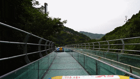 漫步玻璃天桥,视野通透,满目苍翠,深谷美景一览无余;风过处,天桥悬空轻轻摆动,脚踏之处,玻璃会出现裂纹的虚拟效果,让你心惊肉跳,体验感十足,真可谓是惊险与美景同在。