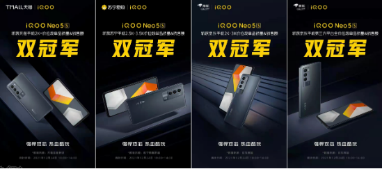 2021年12月24日,双芯旗舰iQOO Neo5S已于今日10点在vivo官网、京东、天猫、苏宁易购、拼多多等全平台正式开售。新机一开售,便受到了酷客的广泛支持和好评,截止到24日14:00点,iQOO Neo5S已斩获京东手机2K-3K价位段/第三方平台全价位段、天猫手机2K+价位段、苏宁手机2.5K-3.5K价位段单品销量&销售额双冠军。