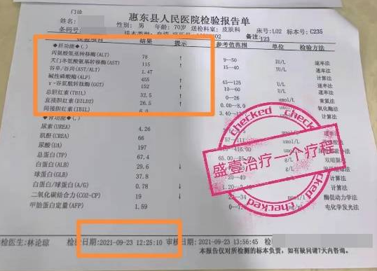 周老虽然年事已高,但是回忆起在青岛治疗的那段日子历历在目。在去青岛前,已经确诊为肝癌晚期,还是肿瘤大到16公分的巨块型肝癌。与医院多番沟通下来,医院委婉地表示不好治。本来自己都不报有希望,但是孩子们为周老四处打听,有幸联系到治愈了肝癌的病友。通过转介绍,联系上了盛壹。