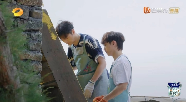 为了给外出务工的妹妹惊喜,大家将妹妹的卧室外墙刷成了粉红色,好哥哥彭彭更是将窗户刷成了“666”的形状;后来“不容易组合”还将厨房梯子刷成黄色,有强迫症的李荣浩和不拘小节的张艺兴配合起来简直是一对活宝的“天作之合”!