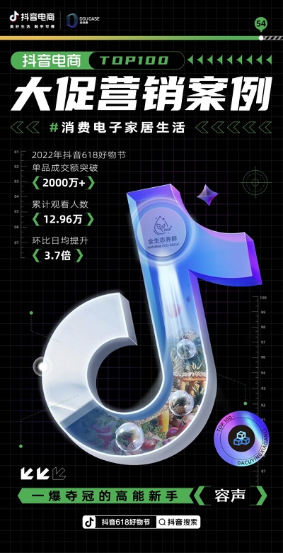 据了解,此次抖音电商推出Top100大促营销案例,将全方位展示不同行业的优秀经验,不断激活平台生态和品牌影响力,持续助力更多商家、达人玩转兴趣电商新模式,读懂生意经。