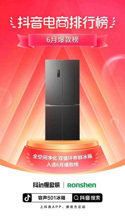 日前,抖音电商携手十大行业百余个优秀商家、达人,针对“618好物节”,推出了#抖音电商Top100大促营销案例#。容声冰箱凭借“聚焦做爆款”的思路,以用户需求为主导,以离子净味501冰箱为主打,一举获得“一爆夺冠的高能新手”称号。