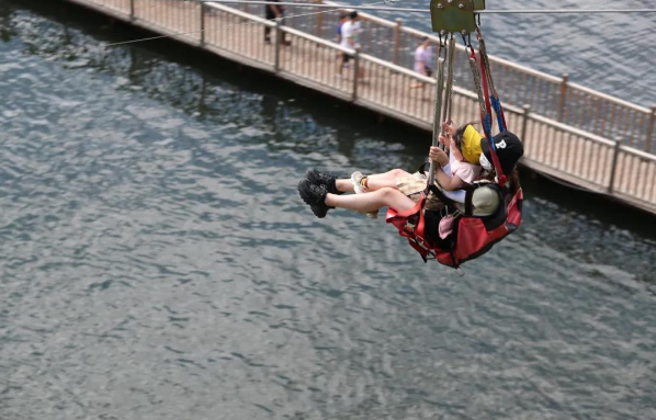 你也可以乘坐高空滑索飞渡——惊、奇的空中滑翔。可以体验到海阔凭鱼跃,天高任鸟飞的感觉,简直不要太美哉。