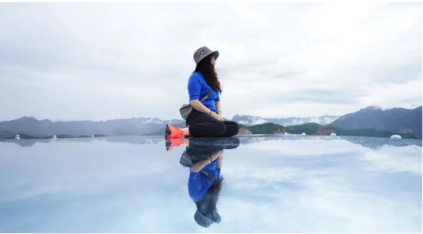 七夕作为恋爱中最有仪式感的日子,当然需要拍照留念啦!除了水晶之恋,天空之境也是出片的好地方,只见蓝天白云倒映在脚下的镜子上,置身其中,恍惚有种来到青海茶卡盐湖的感觉,让人真假难辨。
