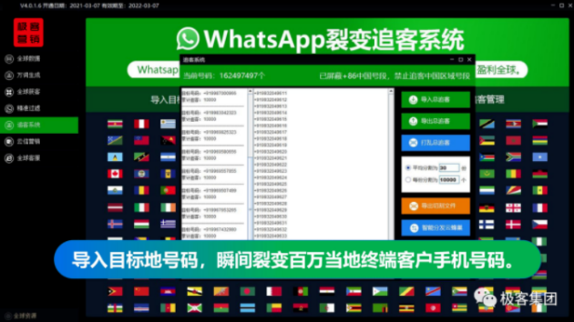 为了给外贸、跨境电商提供一个高效、精准的获客渠道,实现全球精准裂变式拓客,极客营销旗下极客全球WhatsApp大数据获客系统全新上线,拥有全球数据、万词生成、全球获客、精准过滤、追客系统、云信营销、全球客服七大功能模块,快速、便捷、操作简单,助力外贸、跨境电商行业的中小企业轻松完成蜕变与腾飞。