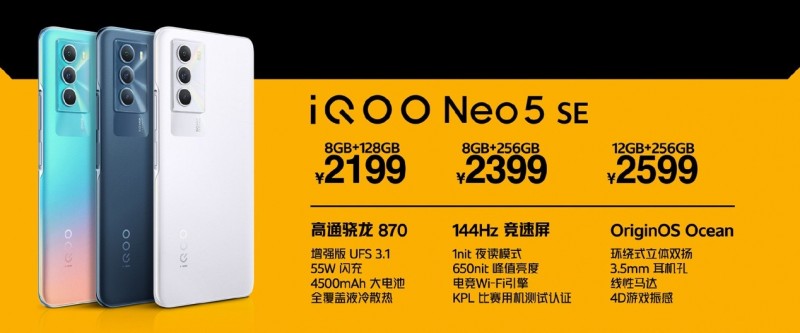 12月28日,iQOO Neo系列另一款新机Neo5 SE于今日上午10点在vivo官网、京东、天猫、苏宁易购、拼多多等全平台正式开售,iQOO线下专卖店、电竞馆、及各大授权门店、vivo体验店同步火热开售。