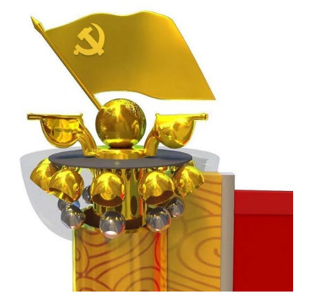 旗杆顶端是党旗插在地球仪中国地图的位置预示中国共产党在中华广袤土地上诞生,有海、陆、空、火箭军暗纹标记。祖国版图代表国家利益至高无上,军队标志寓意人民子弟兵是国家的忠诚卫士、钢铁长城,旗杆顶端的党旗代表着中国共产党率领全国人民实现中国梦,展现中国智慧和力量。加热降温装置确保智慧旗杆在任何自然条件下运行稳定,风速仪和内置变频鼓风机不仅能感应自然风向也能确保在无风条件下旗帜永远飘扬。