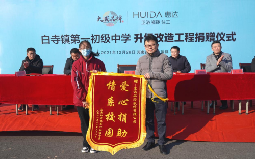 他表示,惠达为缓解白寺镇第一初级中学地面卫生的实际问题,向学校捐赠了总价值达100万元的瓷砖,将极大地改善学校的办学条件,提升师生的精神风貌。不仅是经济上、物质上的帮助,更是精神上的鼓舞和支持!同时,也希望同学们铭记惠达卫浴的捐赠和帮扶,奋发图强,刻苦学习,把爱心化作学习的动力,用优异的成绩回报社会。