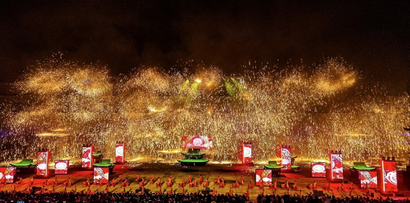 “2015年,我们召集了36位村民,开始在司徒小镇表演打铁花,没想到这一演就把名气‘打’了出去。”周小明说,2017年春节,司徒小镇打铁花以《千年铁魂》大型山水实景剧呈现,而在之后的每一年,不断加入了神话传说、民间童谣、舞台特效等新元素。