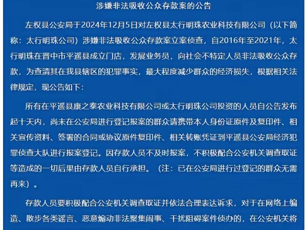 晋中市左权县太行明珠涉嫌非法吸收公众存款