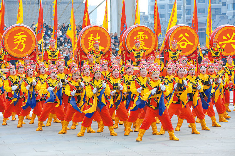 2月21日,太谷区金谷广场锣鼓声声震天响,12支乡镇、城区、教育系统代表队1513余名锣鼓手激情满怀展示了太谷人民团结奋进、争先进位的精气神。太谷区千人威风锣鼓大赛旨在继承保护中华传统威风锣鼓艺术,丰富广大群众的精神文化生活,彰显太谷文化独特魅力,引导全区广大群众增强文化自信自觉,高质量推动文旅融合发展和繁荣,进一步集聚奋进新时代的正能量。