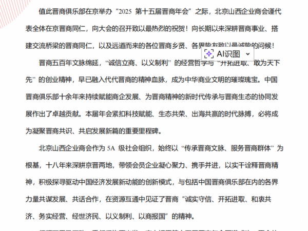 北京山西企业商会预祝晋商俱乐部2025第十五届晋商年会圆满成功