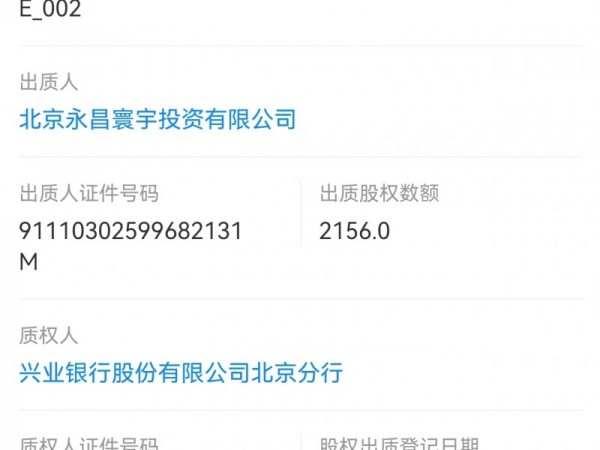 永昌寰宇出质长厚智能股权融资