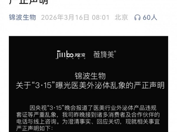 锦波生物回应315晚会对违规套证现象零容忍